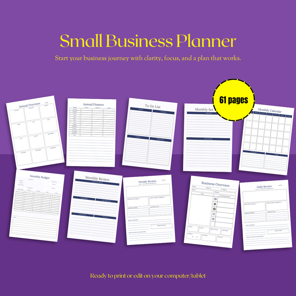 Introducing the Ultimate Small Business Planner (50+ Pages) — your complete system to plan, organize, track, and grow every part of your small or digital business. Whether you're launching a new product, running an online store, or managing clients, this planner helps you stay in control — from your daily to-do list to your yearly profit tracker.