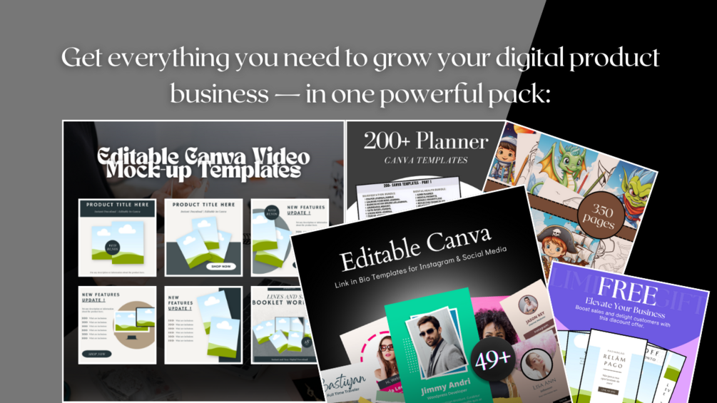 Upgrade your design game with this all-in-one bundle crafted for content creators, marketers, and online sellers. Whether you're selling on Etsy, growing on Instagram, or launching your own brand — this bundle has the editable tools you need to save time, boost sales, and stand out online.